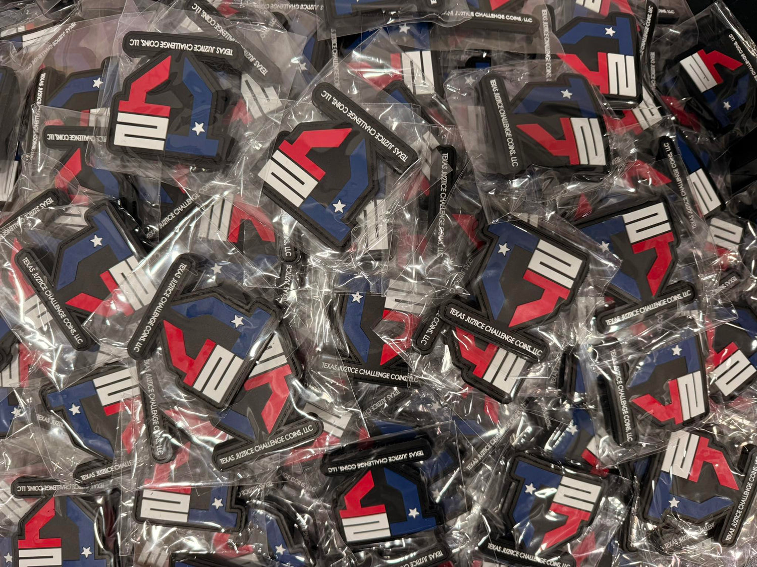 Below you will see different items made for our customers. These items are not available for purchase. Texas Ju2tice has obtained our customers permission to display their items on our page. Email us to get a custom coin designed for your company or department.
