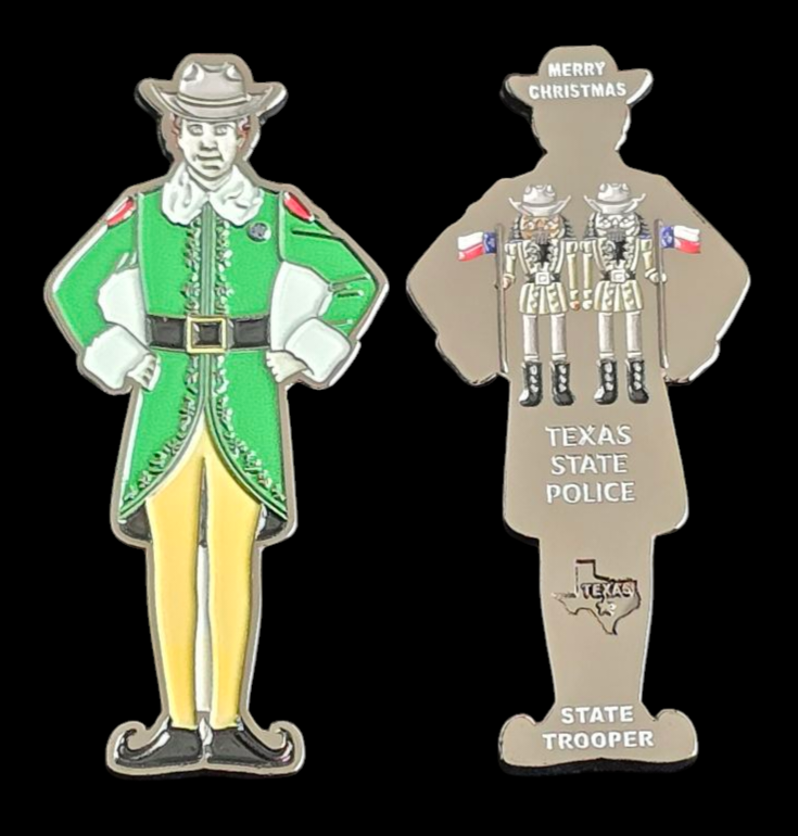 Set of two Christmas Challenge Coins, the one shown and a variant with a different color suit.